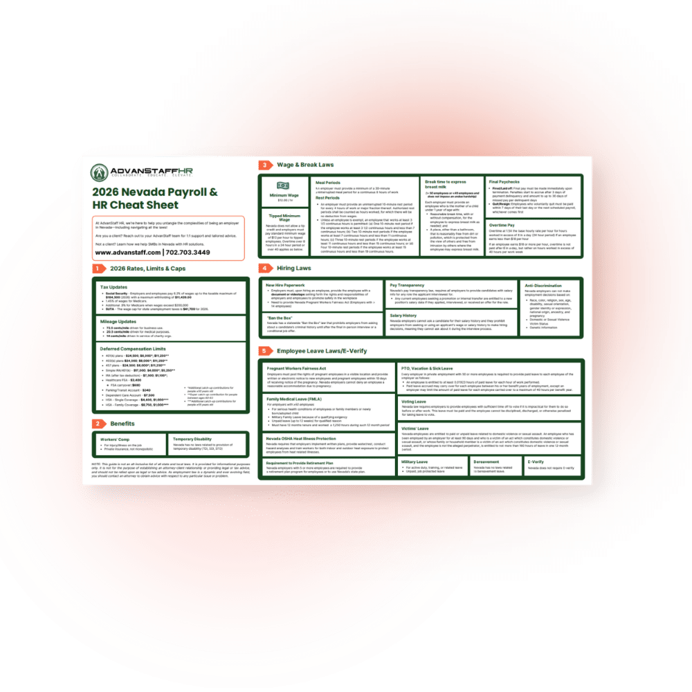 Staying compliant shouldn’t be a guessing game. Our 2026 Nevada Payroll & Labor Law Cheat Sheet keeps all the latest updates in one easy place. Skip the stress (and avoid those costly slip-ups).